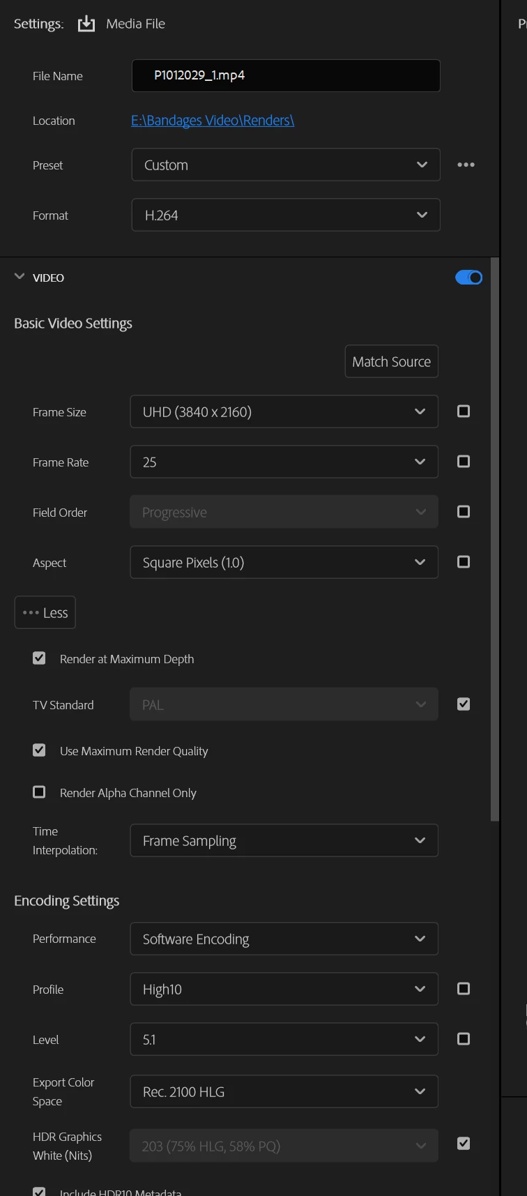 In Premiere Pro 2025 Beta, I'm trying to export HLG footage using Hardware encoding but get the error message -