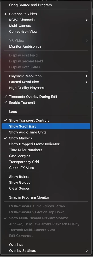 To show/hide the scroll bars in Program and Source monitors: