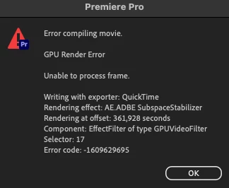 Export error 1609629695 (Warp Stabilizer effect)