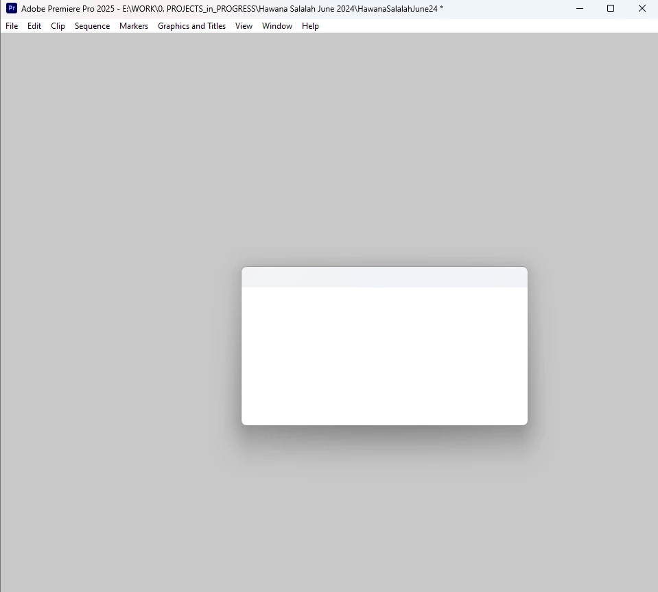 The process of transcribation goes on gradually but I cannot see the progress because Premiere Pro hangs though some its tabs continue to respond. After the transcribation is over, Premiere Pro stays unresponsive, so if you minimize it and maximize again you see this white window: