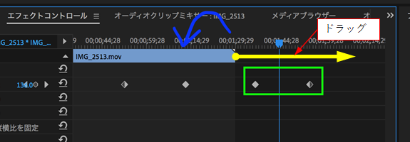 エフェクトをかけるというより、キーフレームを使って画像を動かしていたのですが、保持セグメントクリップの伸ばした部分はキーフレームを打っていてもうごきません。