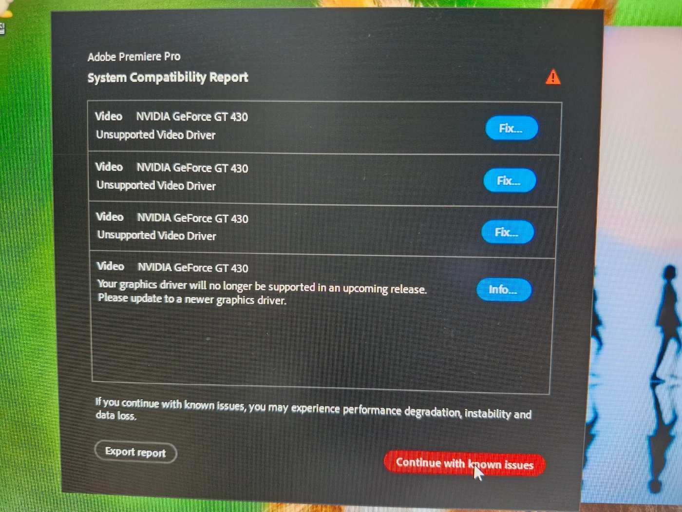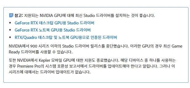 하여 해당 GPU 로 프리미어 프로 2025 사용은 어려울 수 있을 것 같습니다.