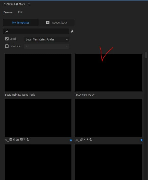 에센셜 그래픽(essential graphics) 미리보기 화면이 전부 블랙으로 나오네요