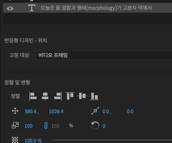 자막을 이렇게 한개 드래그 하면 정렬 탭이 뜨는데
