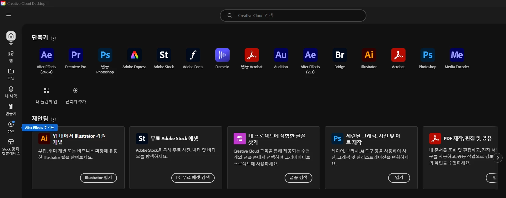 설치된 다른 앱들은 컴퓨터 내에서 잘 열리는 데 프리미어만 이런 현상을 보입니다