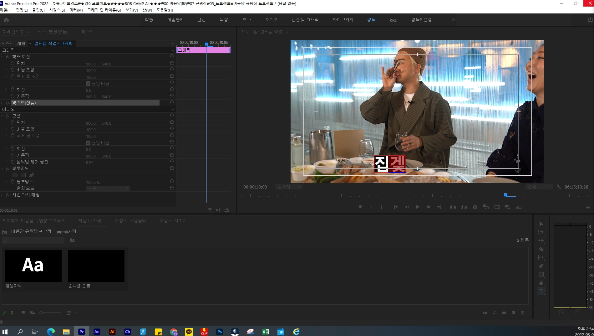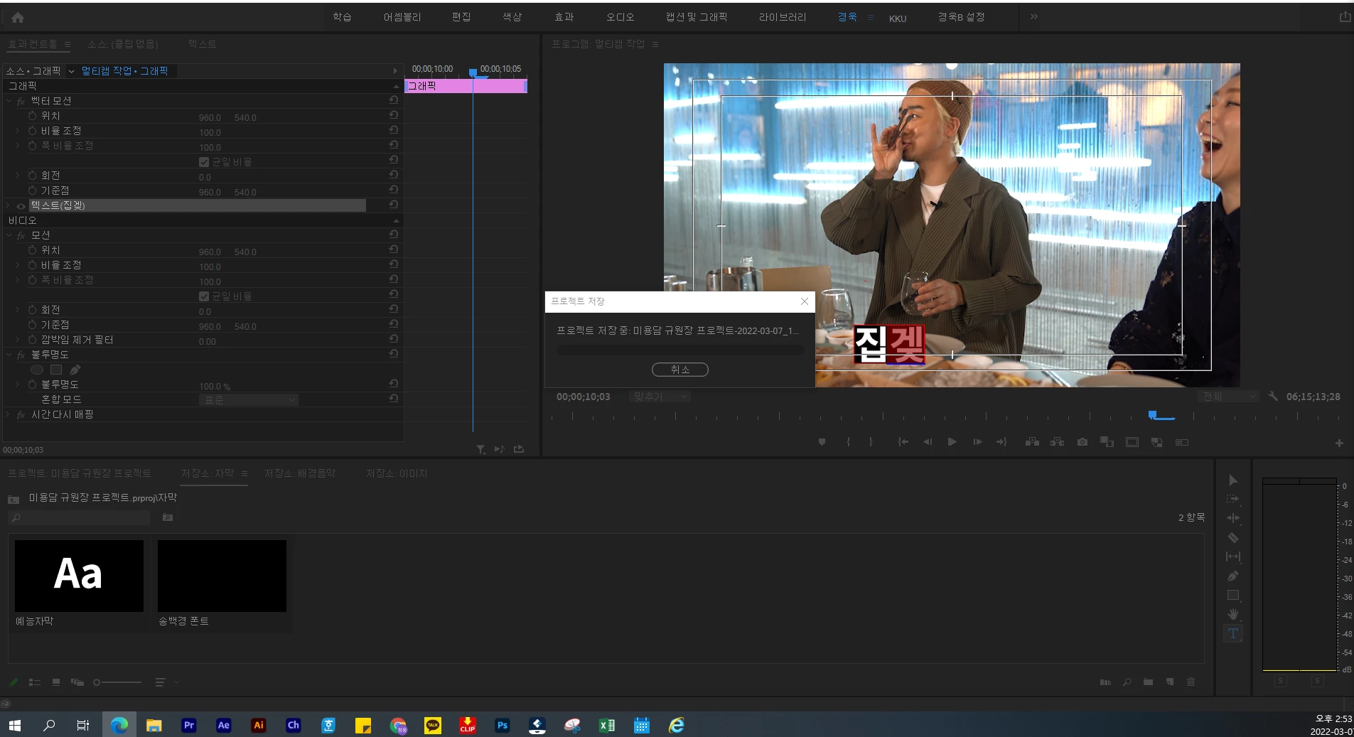 한글자막 작성 중 자동저장 오류 문제/ 멀티캠 효과컨트롤 조정 문제