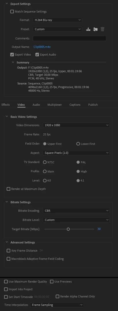 4K SOURCE SEQUENCE EXPORT TO H.264 BLU-RAY