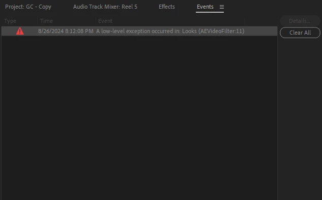 A low-level exception occurred Premiere