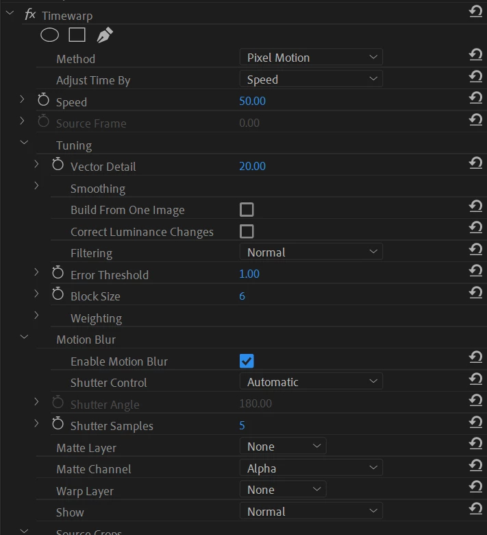 I am working on a 1080p24 timeline, and the clips are a combination of 4Kp24, 1080p24, all are MP4 files from a Panasonic GH5. So, basically, everything works fine... except whenever I try to apply the "Pixel Motion Blur" effect to a clip in the timeline, I get the error below...