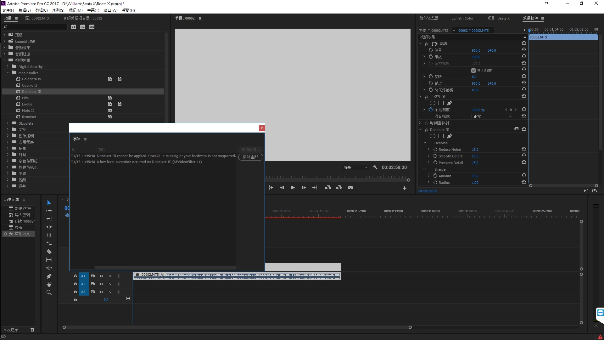 I'm using denoicer 3 on premiere pro 2017