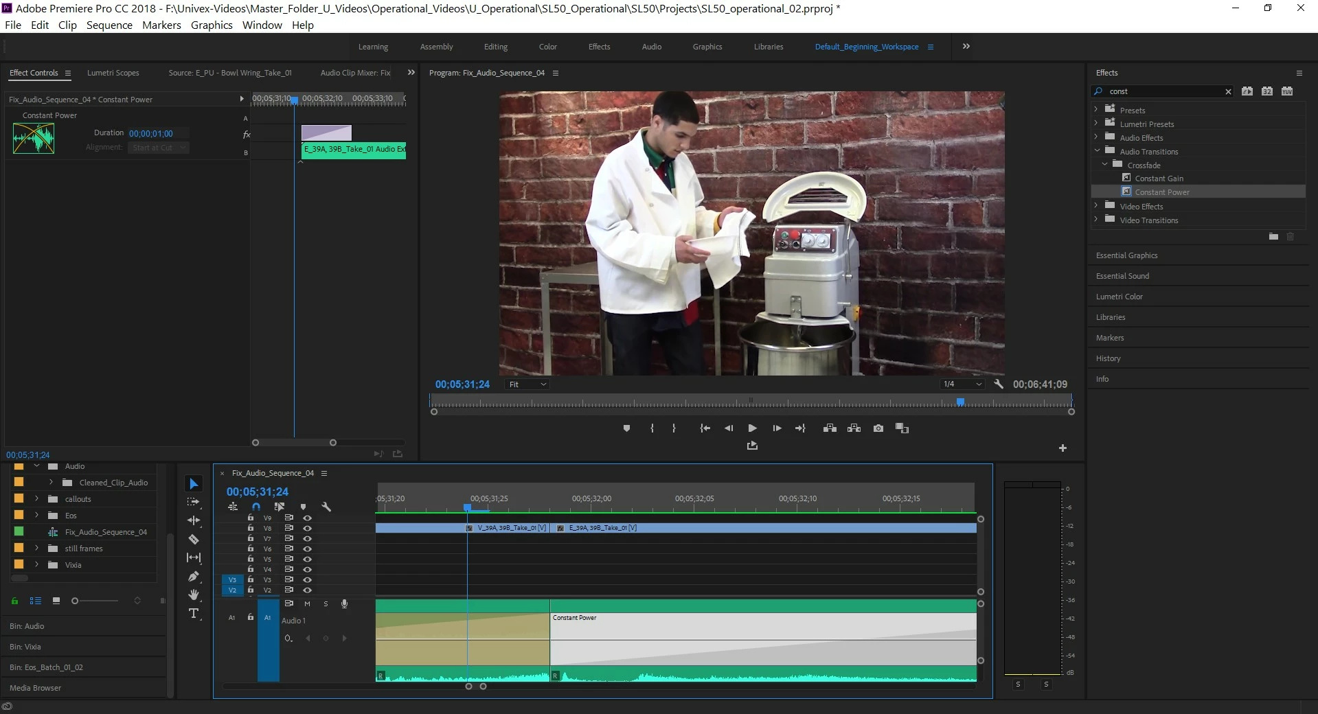 Can't apply "constant power" between clips in Premiere Pro CC 2018