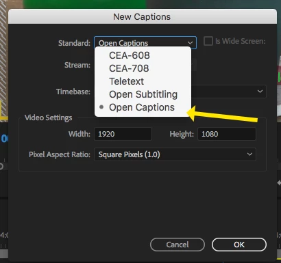 Can't change color of text or background of text in open captions? (Premiere Pro 14.9 and earlier)