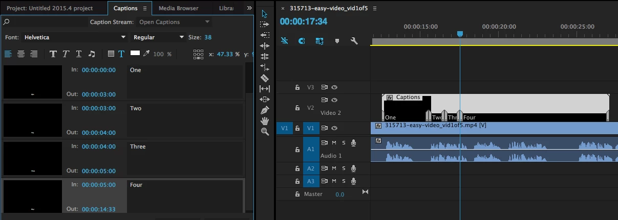 Cannot change trim or reposition an open caption in the timeline (Premiere Pro 14.9 and earlier)