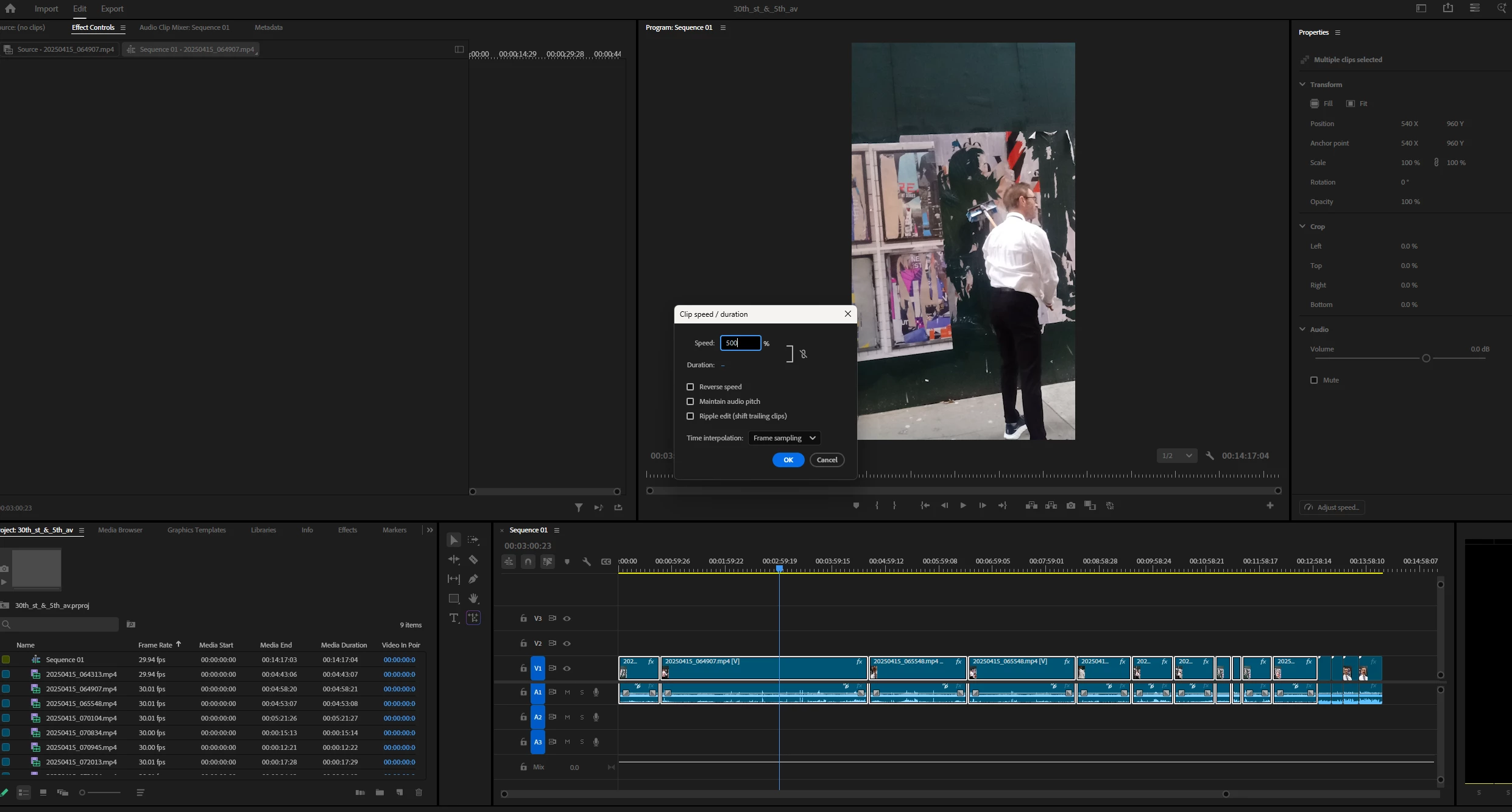 I've lassoed the clips in my video where I want to speed it up, but only the first clip is being affected. How can I change the speed in multiple, successive clips without doing it individually? Thanks.