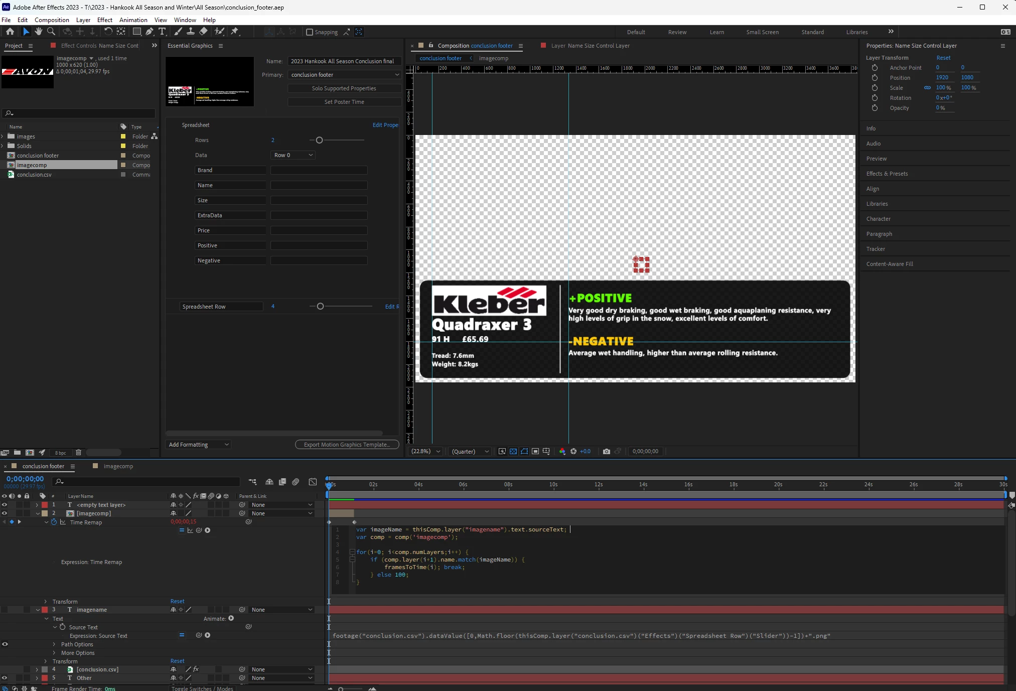 I have written an after effect comp that loads data from a CSV file, and using a slider I can alter the text shown based on the row number the slider selects. This all works fine in after effects and premiere.