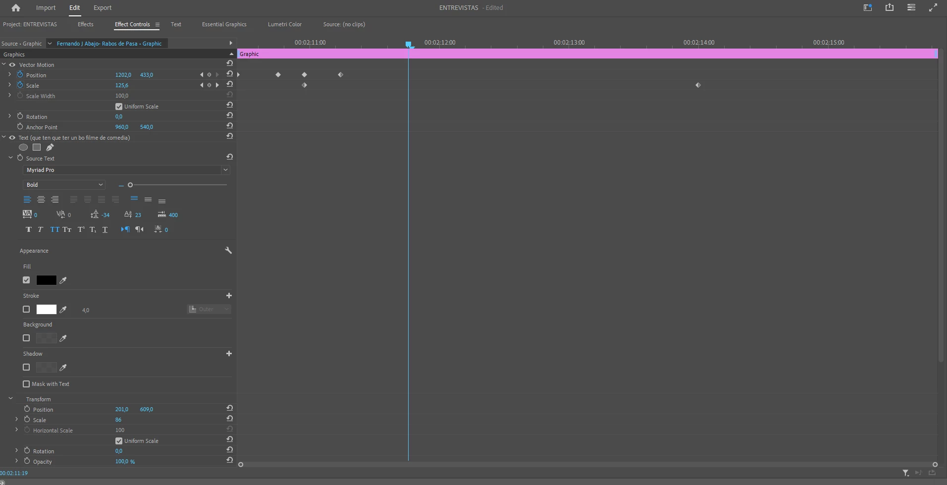 Hola, llevo un par de días trabajando en un proyecto y me ocurre algo extraño. Se trata de un video que contiene unas cartelas con un texto al cual se les ha animado el movimiento de entrada (mediante Keyframes en posición, algo muy sencillo). El problema es que cada vez que cierro el proyecto, cuando vuelvo a entrar se ha desconfigurado todo (interlineado, línea base, no está centrado... ) Se os ocurre a qué se debe y como solucionarlo? Gracias