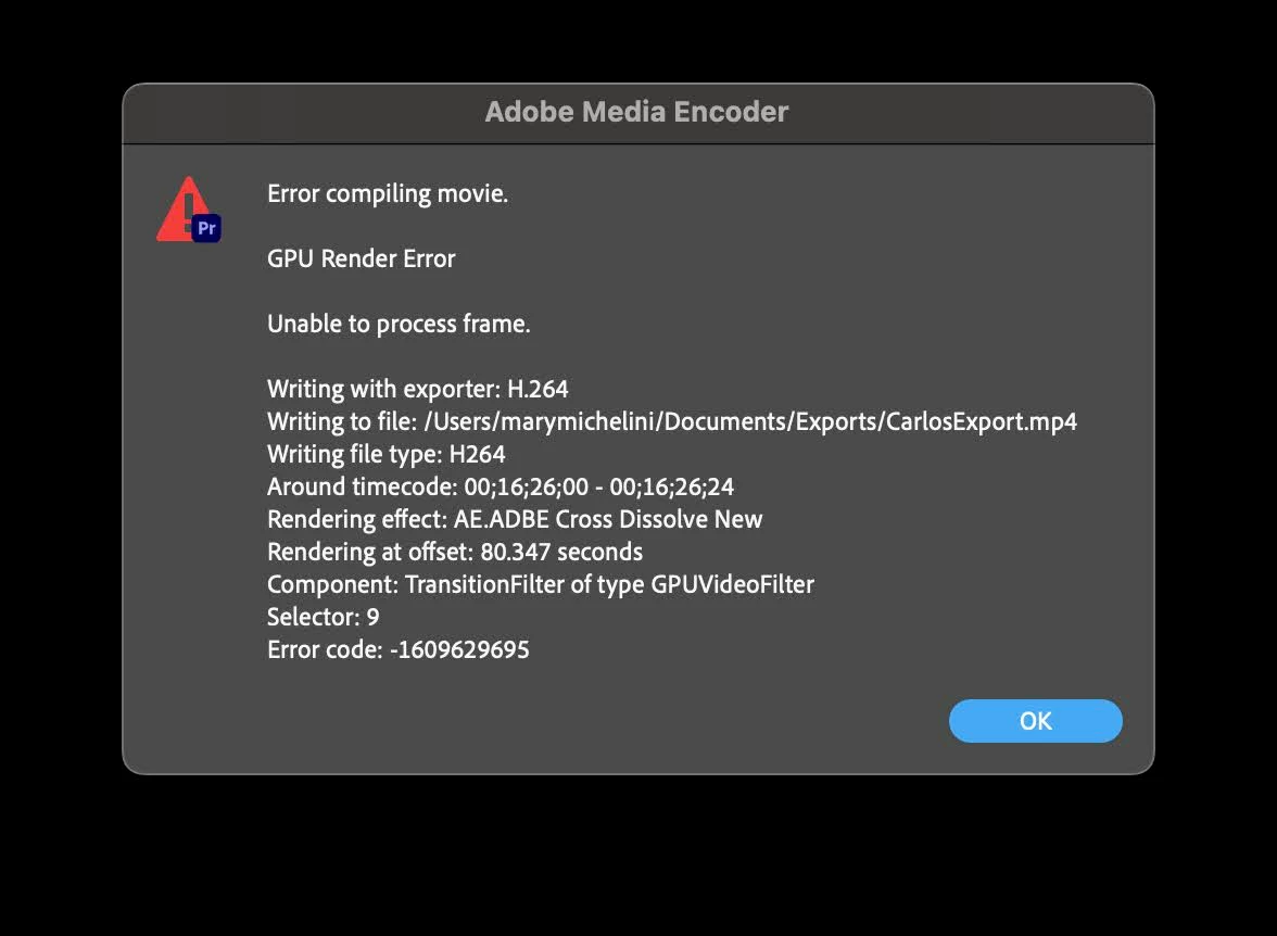 This error resulted in failed export (even though it had rendered to green). Error message also posted below.