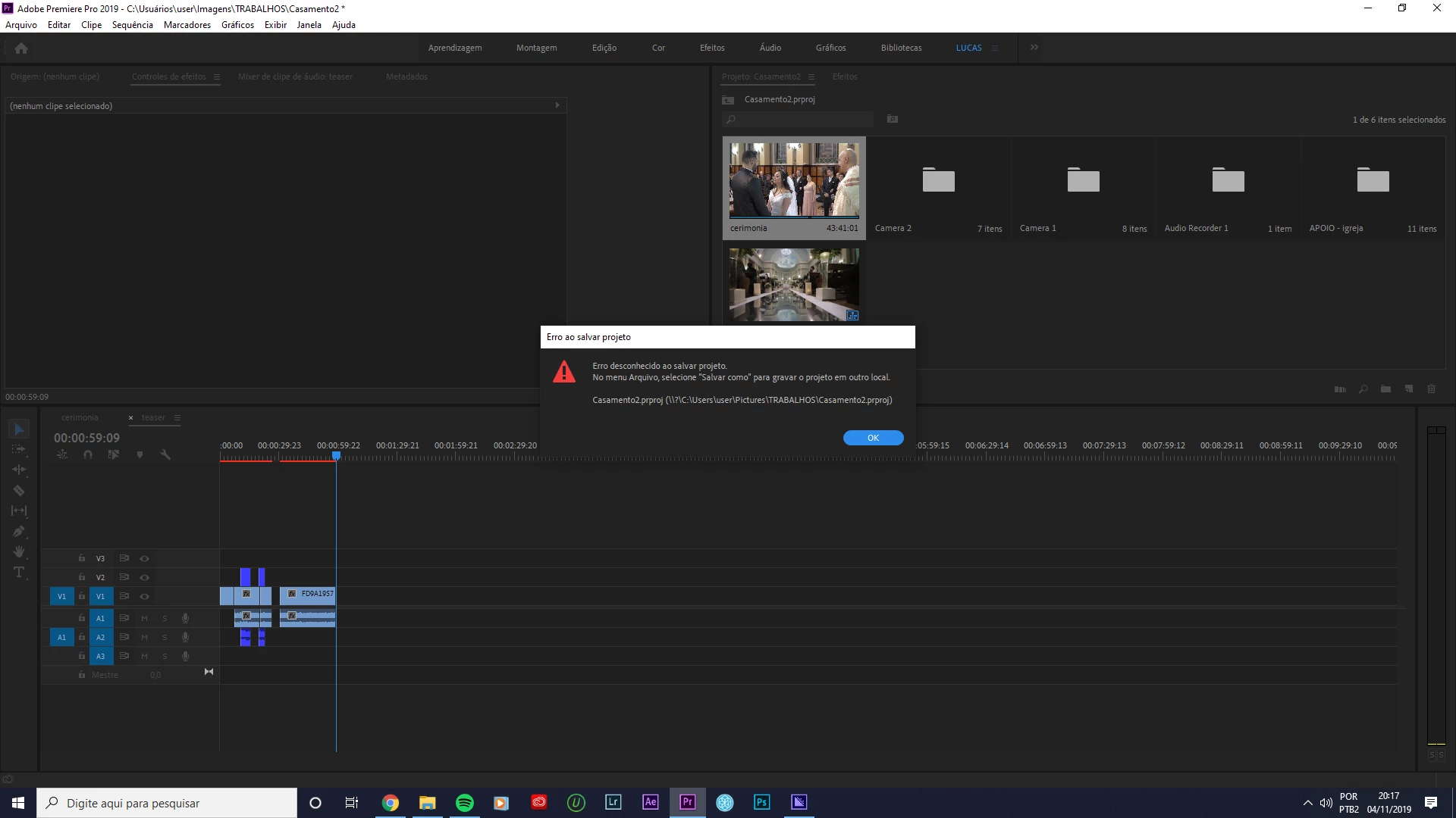 ERRO Desconhecido, não consigo salvar o projeto.