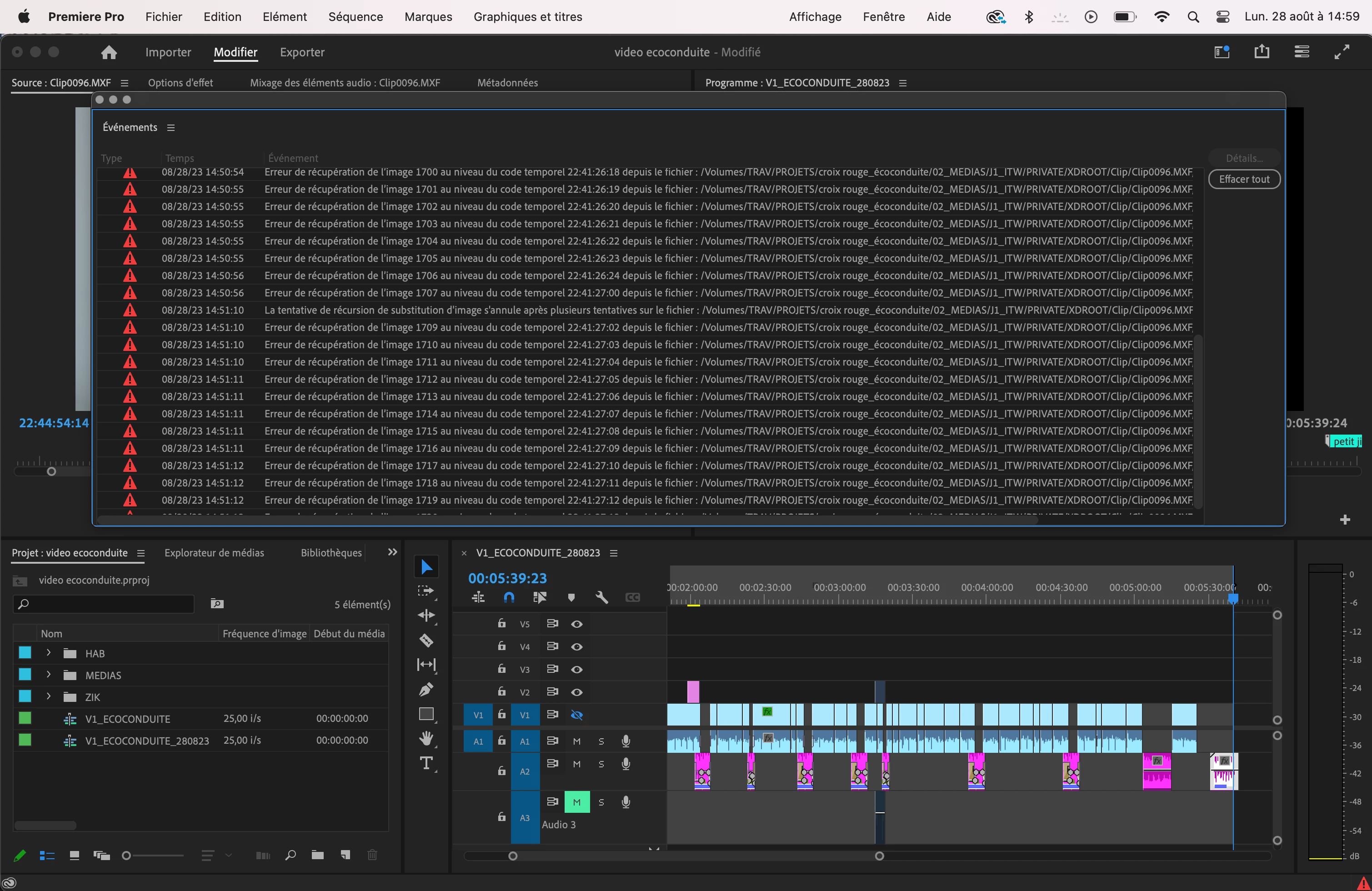 lorsque je lis une vidéo (avec son et images) dans le logiciel un message d’erreur apparaît « Erreur de récupération d’image ... au code temporel ... » et « La tentative de récursivité de substitution d’image s’annule » lors de son exportation, la vidéo a du son mais pas d’image.