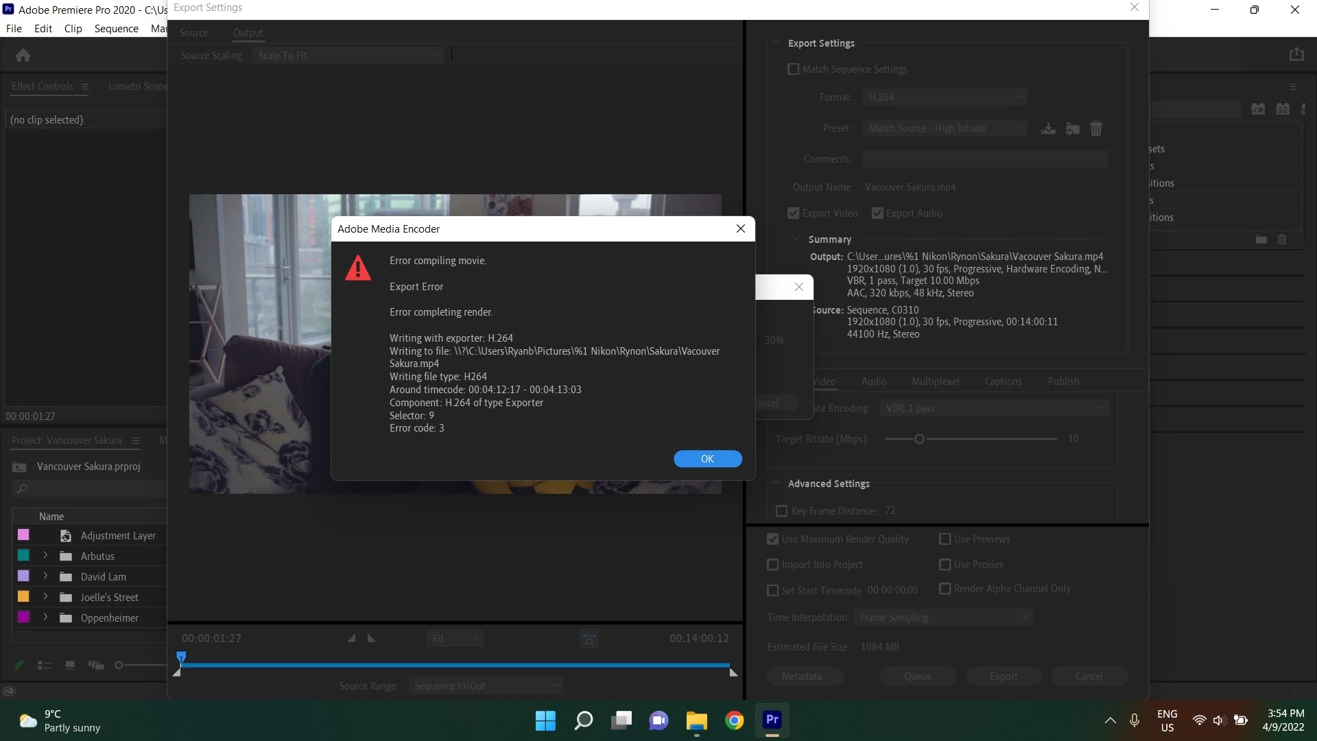 I'm a premiere pro noob and have no idea what I'm doing wrong. I've exported many videos up to this point and never received this error. Screenshots below if they're of any help.