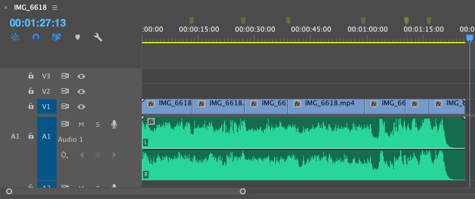 Here's a sample timeline with markers at the video cut points.