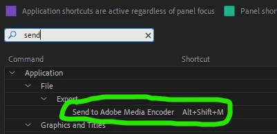 I press Ctrl+M and it takes me to the Premiere Pro Export screen, I want to press Ctrl+M and go straight to Media Encoder.
