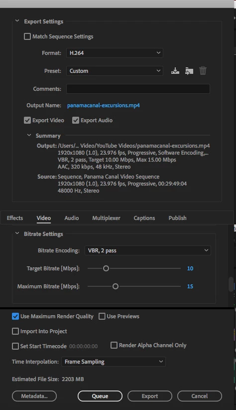 Exporting Video for YouTube