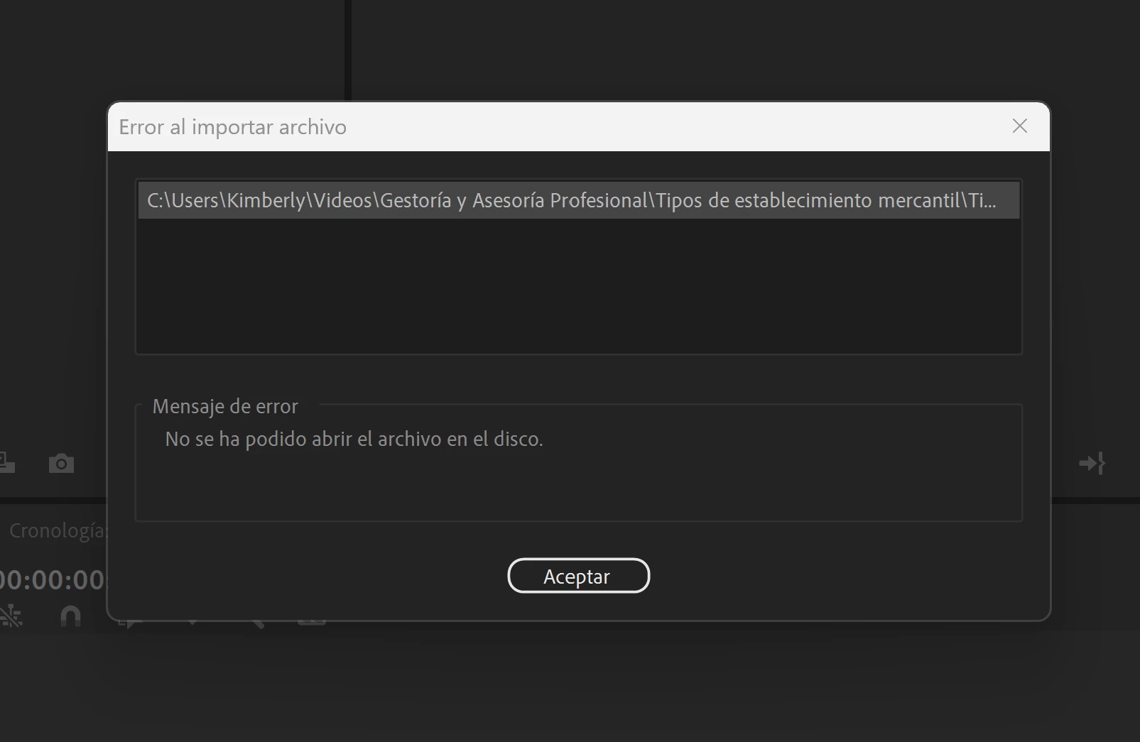 The translation to english would be someting like "Failed to import file. Could not open file on disk."