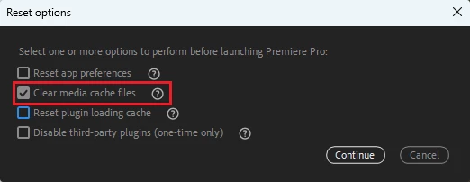 - Shift 키를 누른 상태로 Premiere Pro를 실행합니다.