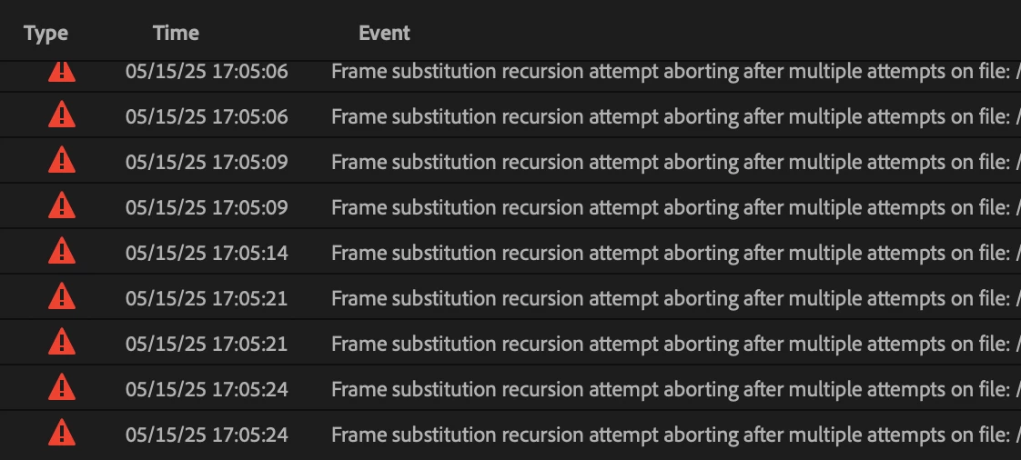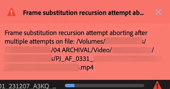 I had gotten the error on another Production when I linked to video files on LucidLink. However, with this Production, all the files are on an OWC Thunderbay HDD. I read on a post about this topic that switching to software encoding can fix it; but I'm on a silicon Mac, where it's locked hardware encoding.