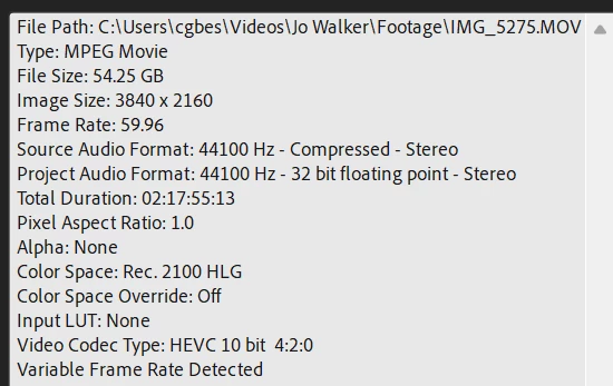 I'm working with the above footage shot in the 2100 HLG Color Space. When exporting and choosing "match sequence preview settings" a 1min clip ends up as 12GB!