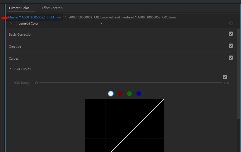 The following image shows the Master Tab highlighted in blue ... and you can access that tab in either the Effects Control Panel (ECP) or the Lumetri panel as below.