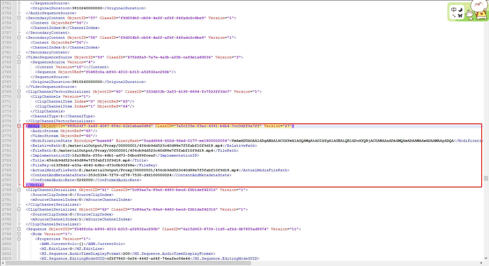 I try to edit prproj file to replace fileurl,but I dont known what means each node and field.
