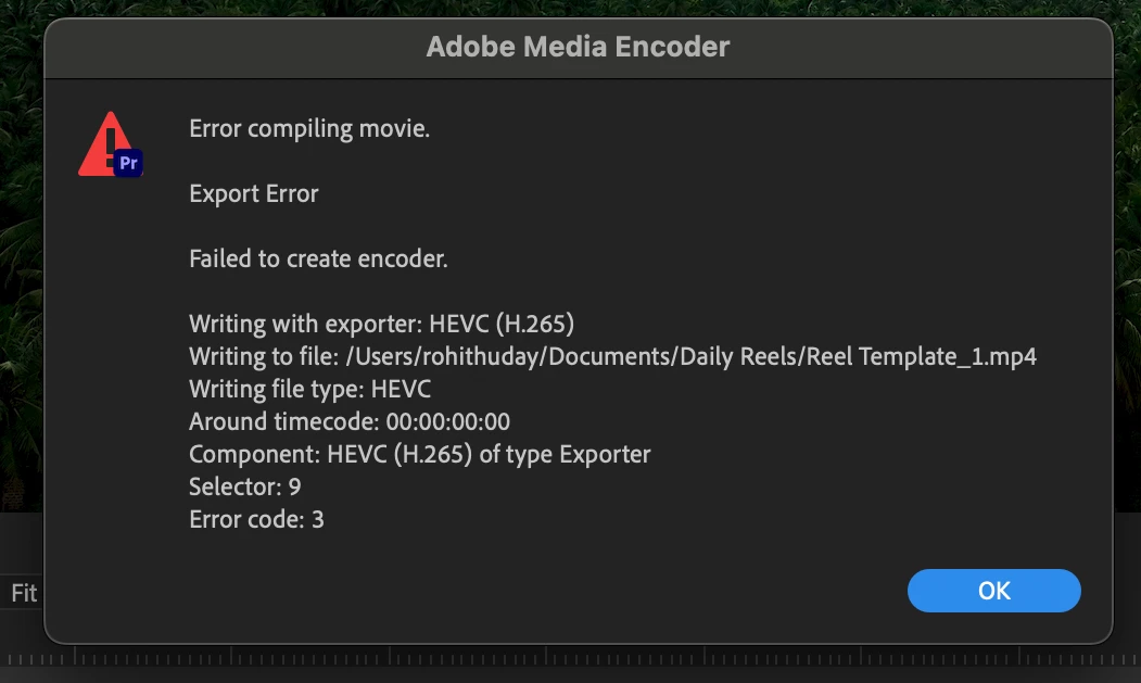 I am trying to export a media and when i select the below format i am getting an error "Your System's Hardware does not support Hardware acceleration for the current Settings"