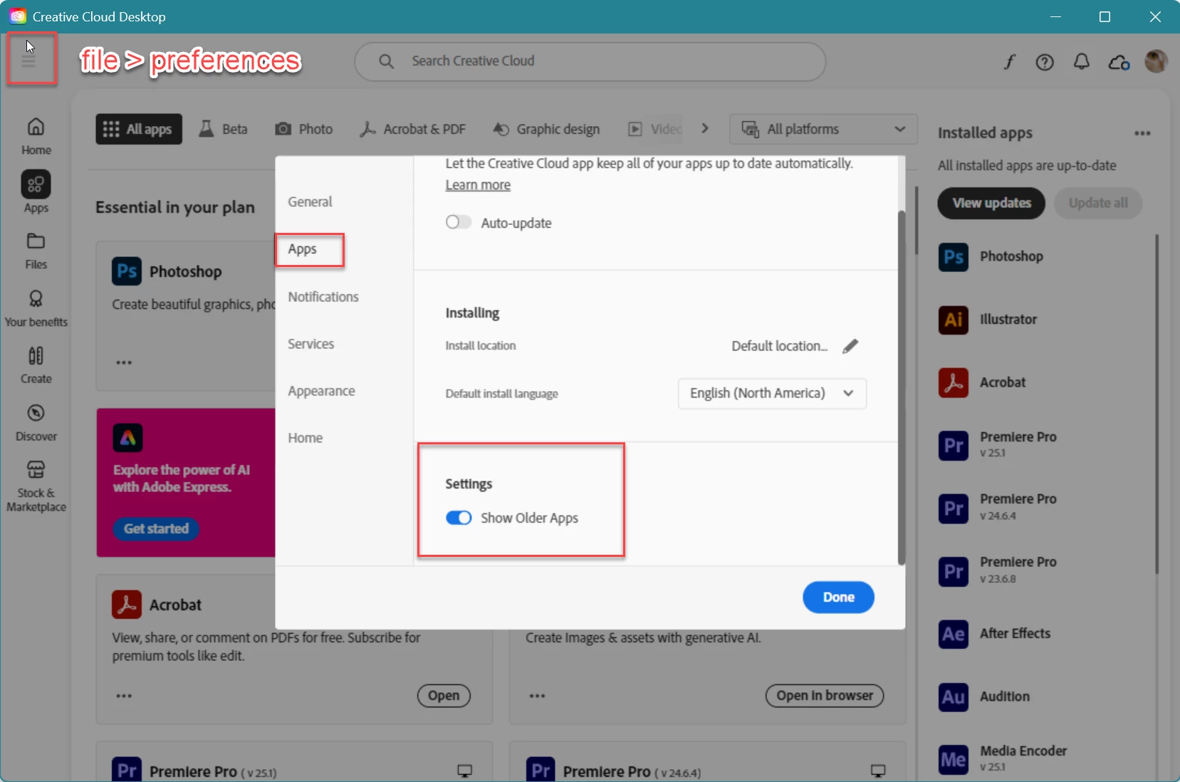I have older xeon processor computer. it is incompatible for premiere pro ver 25. I need to install premiere pro ver 23. please help me
