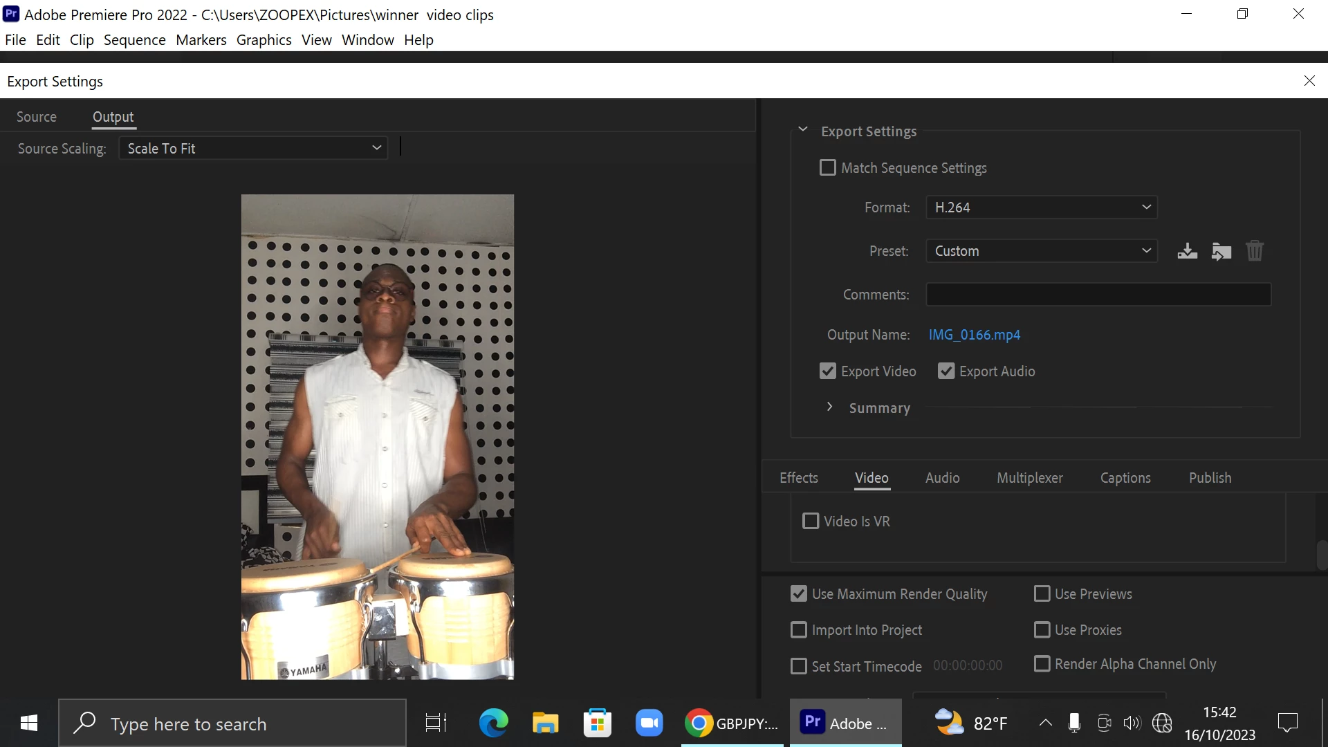 1920*1080 for my resolution. but i just found out that reducing my texts  and apps in settings and coupled with reducing the size( minimizing) of the export setting windows, i was able to see the export button below. but now the problem am facing is with adope media encoder error notification after i press export, any help on this?