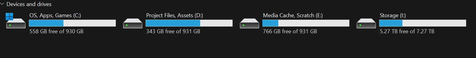 Yesterday I was working on a project in Pr and I got a warning that I was running out of cache space and should save. I check my storage, as shown below and my cache drive is fine. Anyways, I hadn't cleared it yet, so I decided to just go and do it manually. Edit > Preferences > Media Cache > Remove Media Cache Files > Delete