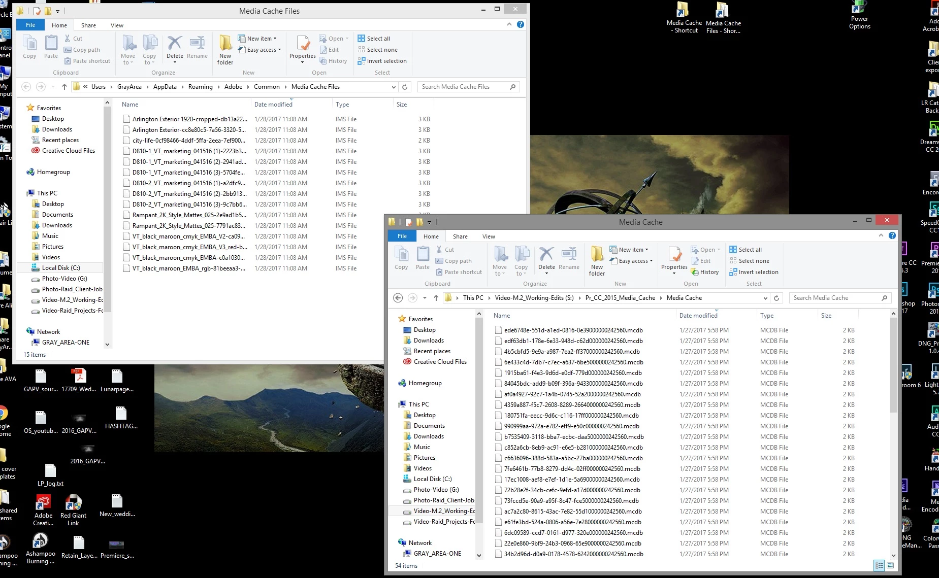 Image 1 below: screen of the two folder locations, top folder is generating cache items when I open a project.