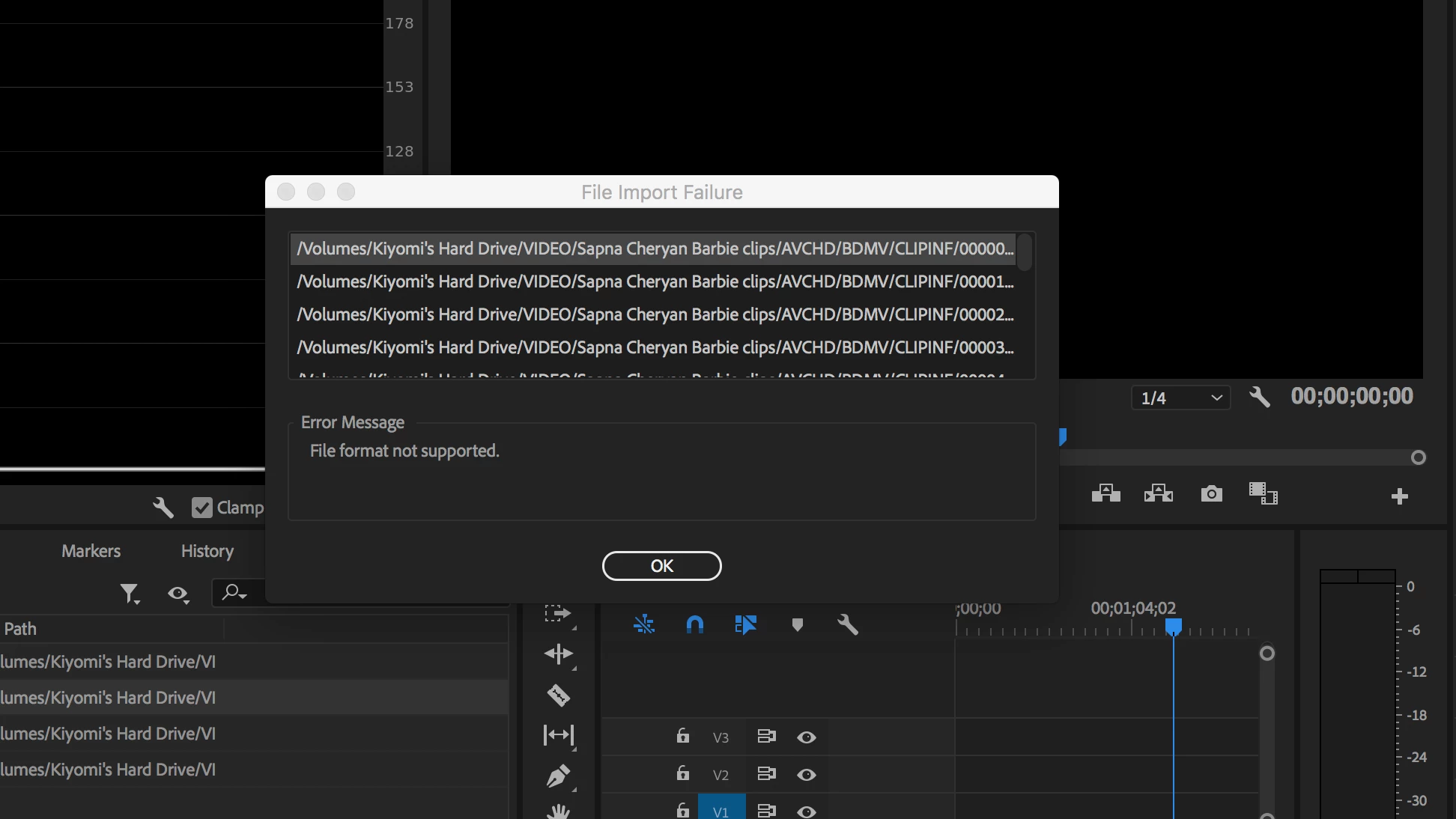 Secondly, I"m getting this error message, although the files seem to play, edit and export just fine:
