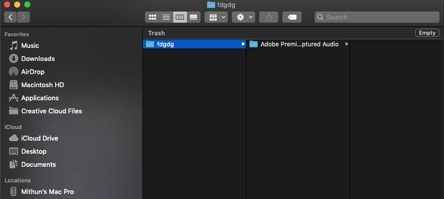 MacOS Empty Trash Can Error with Premiere Pro Captured Audio