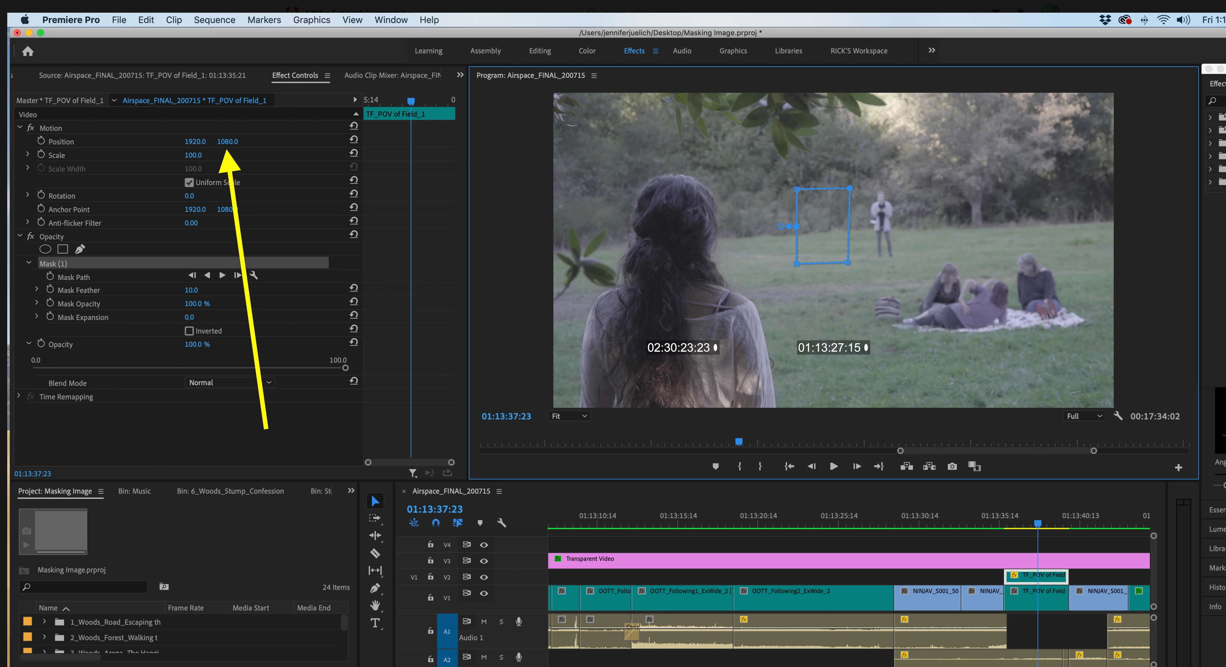 With the mask in the first positon, click down on this number and drag to the right (the cursor with change to a icon with two arrowheads pointing left and right):