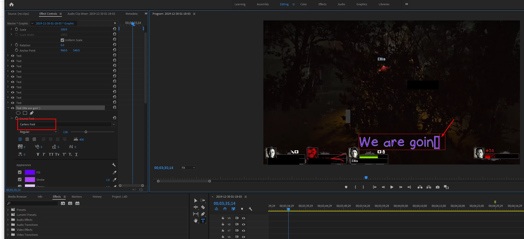 Missing glyphs in custom-made font for Adobe Premiere Pro 2020.