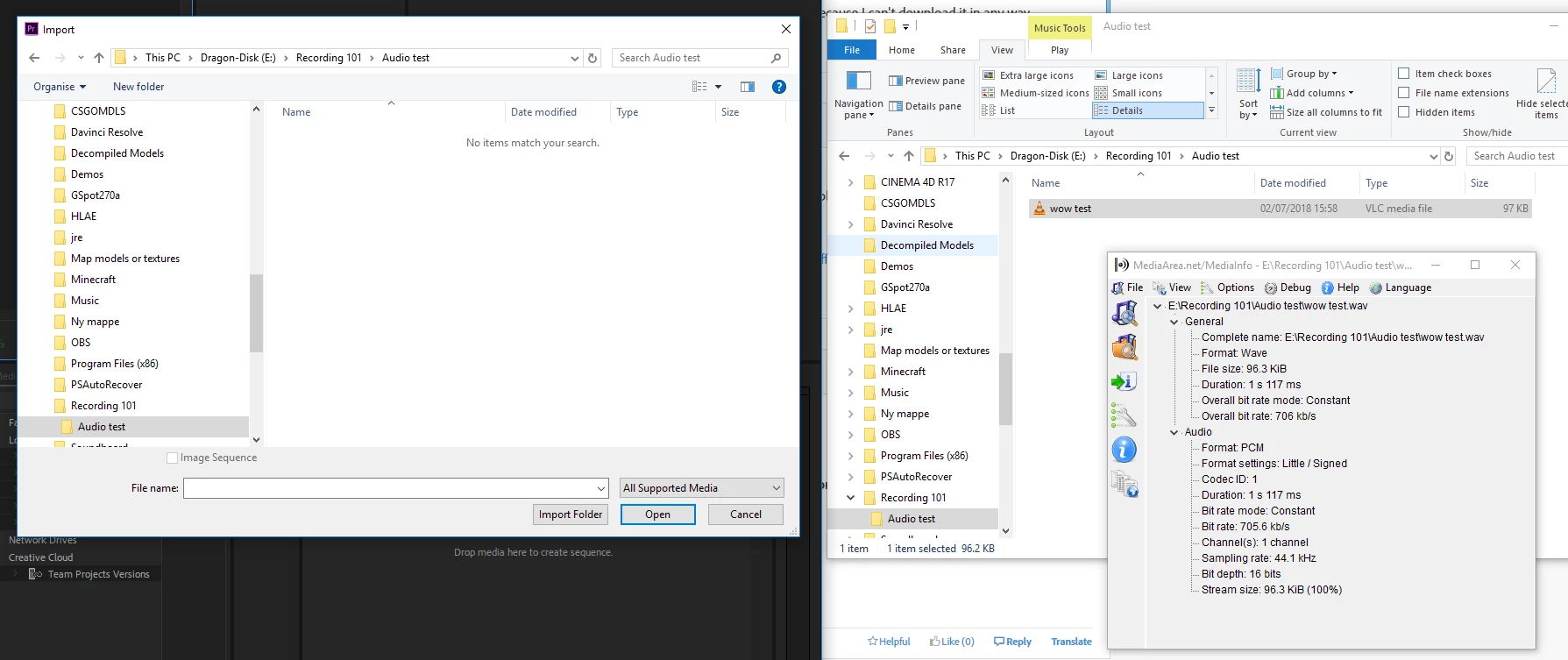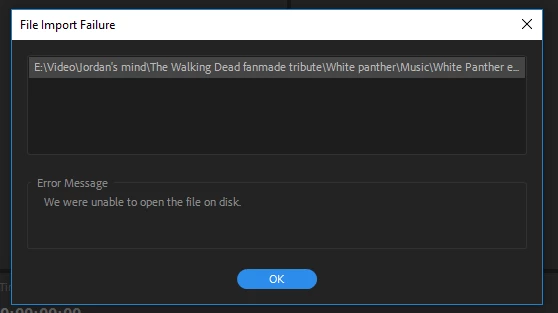 mp4, mp3, WAV files can't import at all (We were unable to open the file on disk)