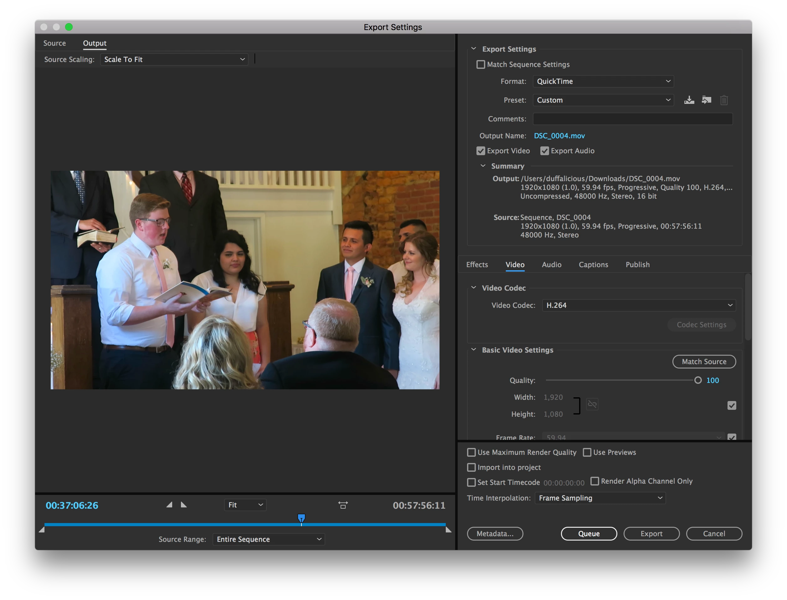 Hi there. Very new to Premiere Pro CC. I'm trying to export a 55-minute video. I figured it was going to be big, but the final file size wound up being over 100 gigabytes. Clearly, that's not something I can give to a client. But I'm having trouble figuring out what export settings will be best to use.