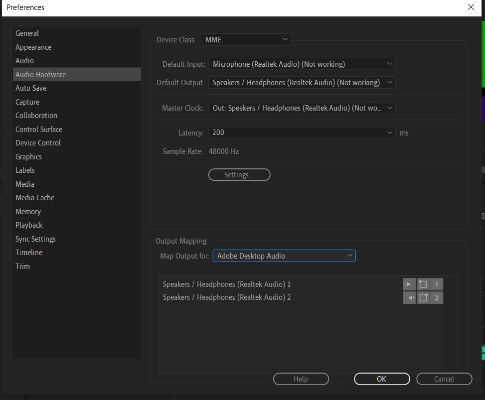 No audio is coming out of my laptop - Audio Hardware is saying Not Working in Premiere Pro[Win10]