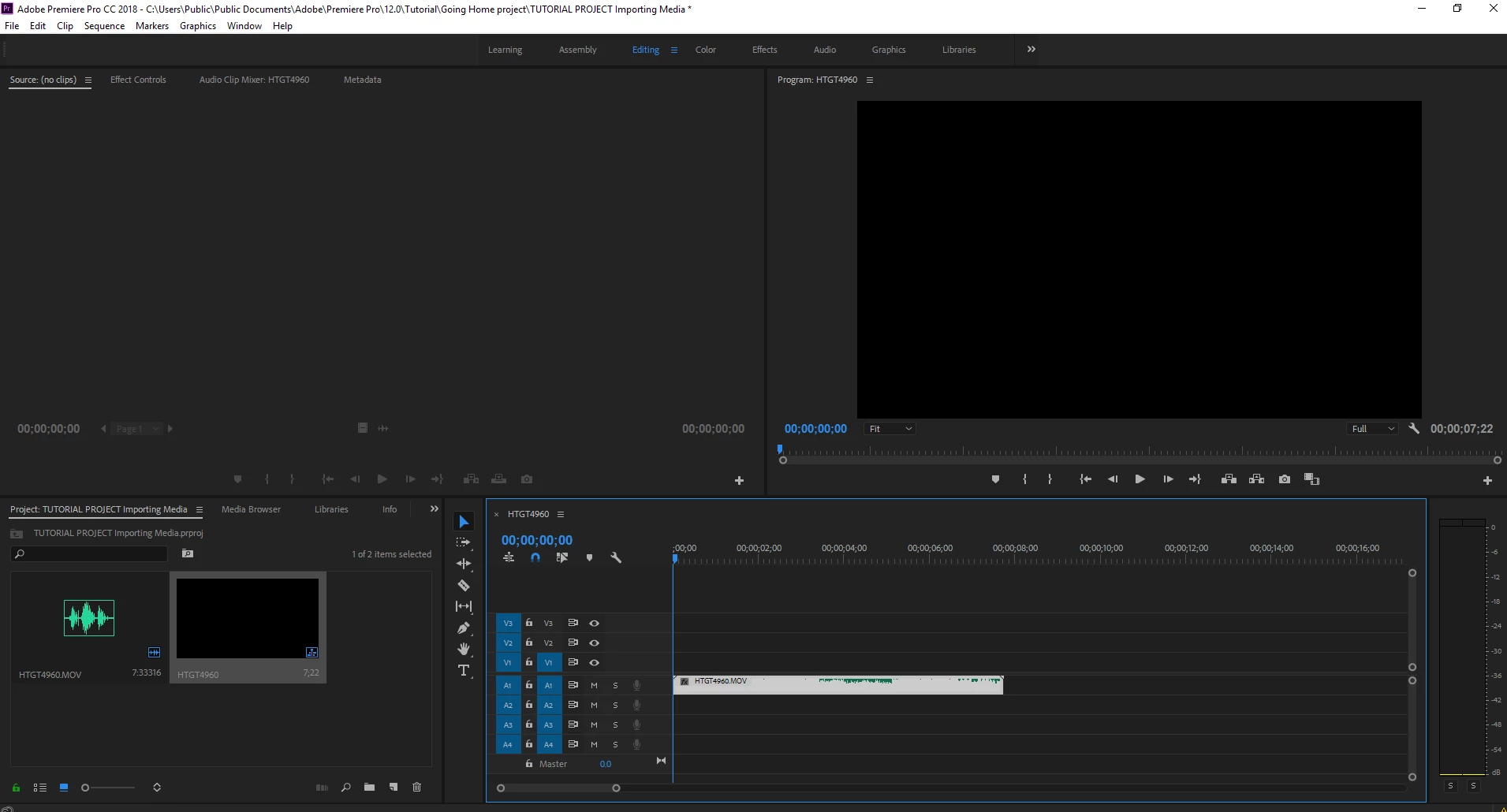 Audio and video on import but no audio or video showing in timeline.