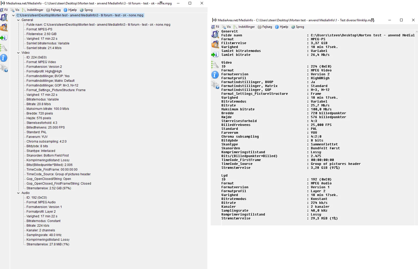 Here is the screendump from "MediaInfo" and two of the files in my project.