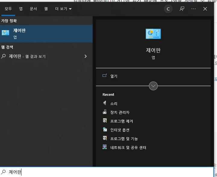 Windows 시작 버튼 클릭 후 “제어판”을 실행