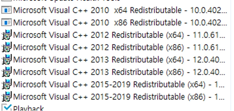 그 이후 하단으로 내리게 되면 “ Microsoft Visual C++” 라는 항목이 확인 되실겁니다.