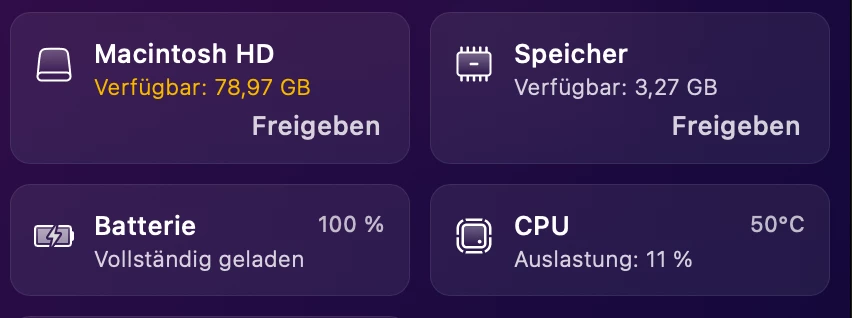 Tatsächliche habe ich aber genügens Festplattenspeicher (78 GB Frei), die CPU ist nur zu 11% ausgelastet und der Arbeitsspeicher ist auch nicht ausgelastet (3,27 von 16 GB):